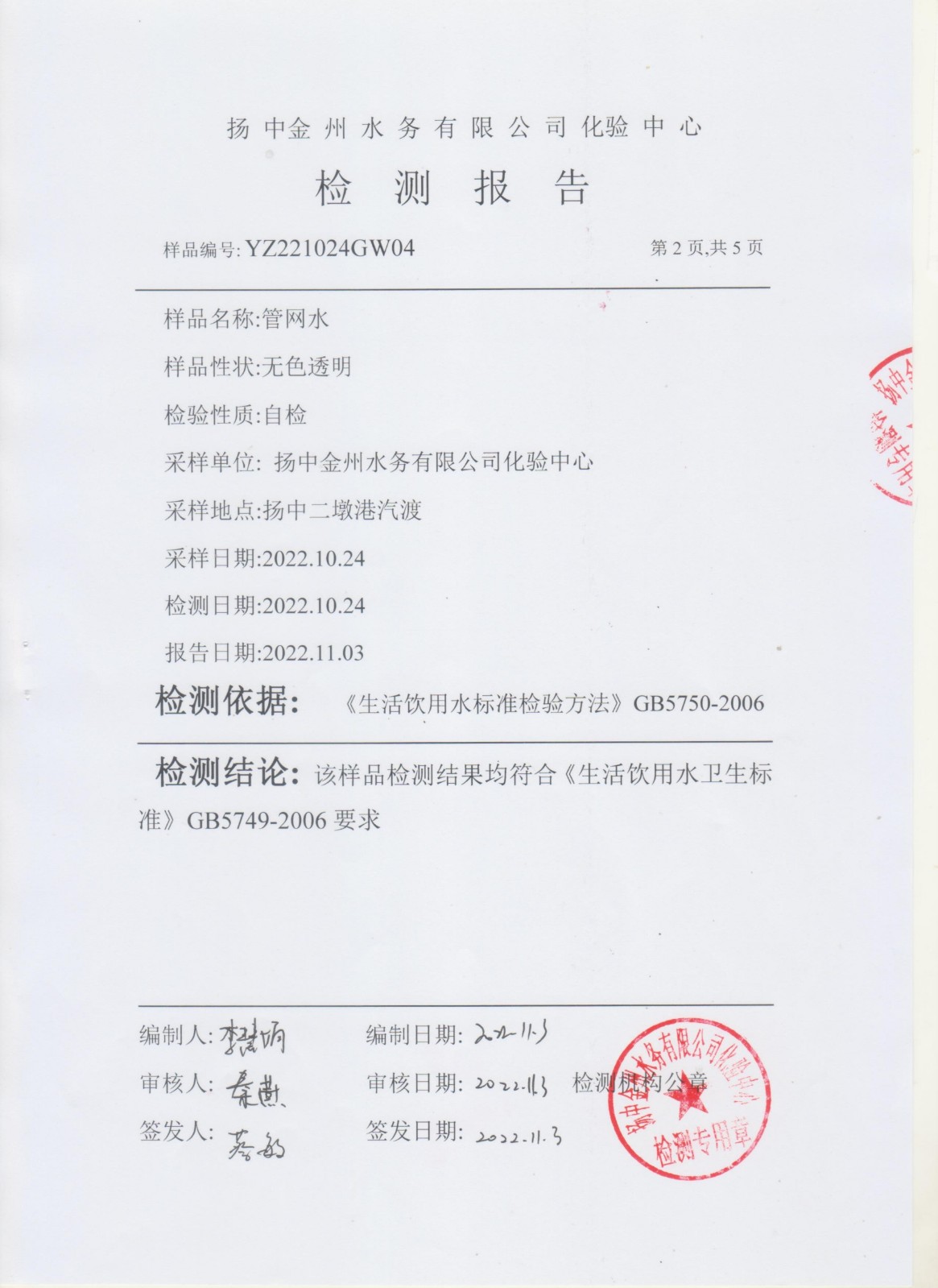 水質(zhì)公告