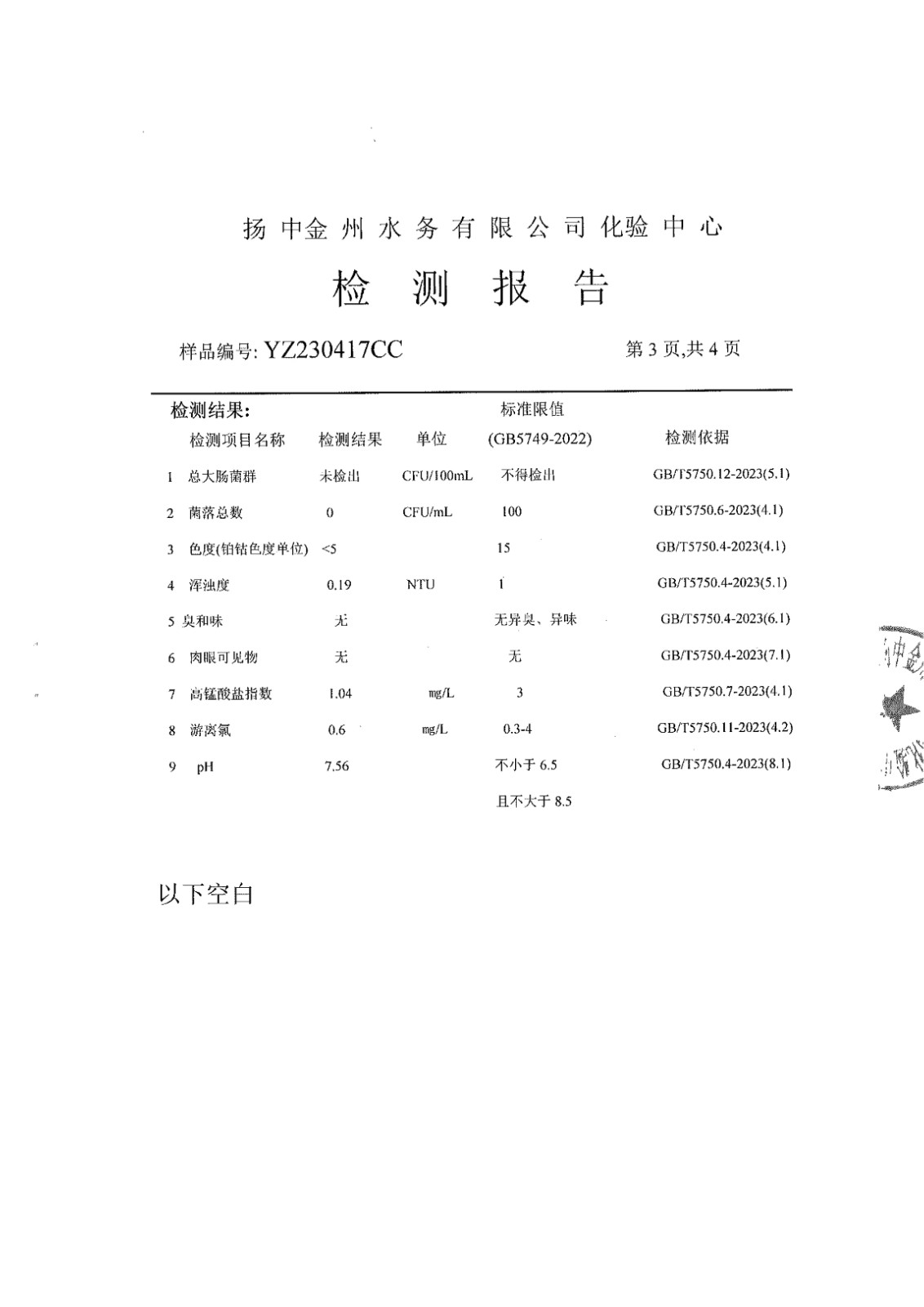 水質(zhì)公告