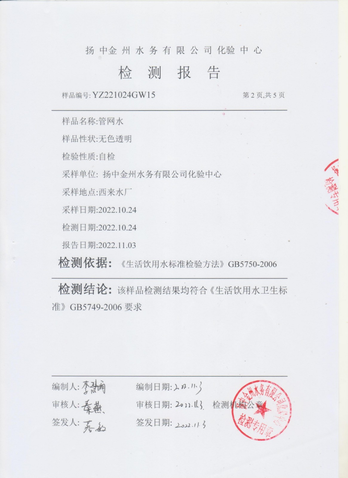 水質(zhì)公告
