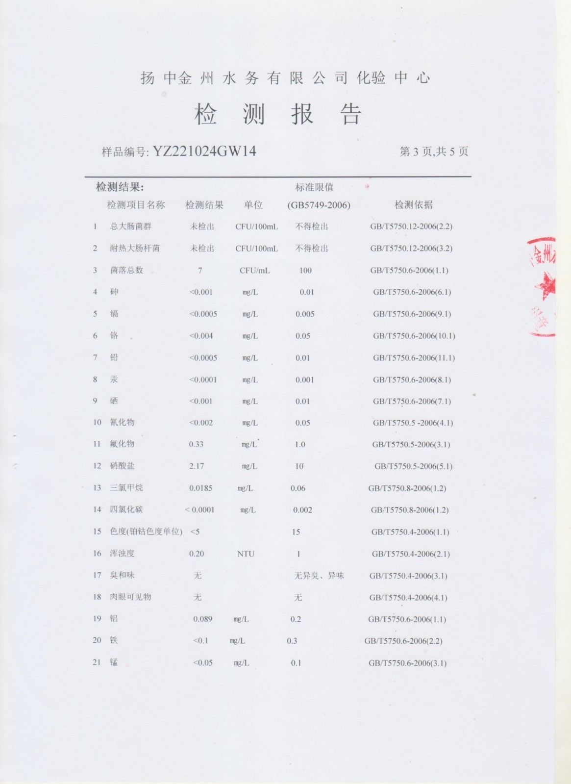 水質(zhì)公告