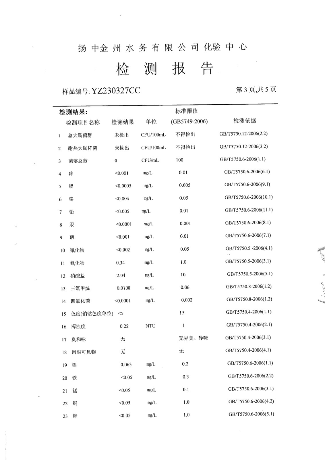 水質(zhì)公告